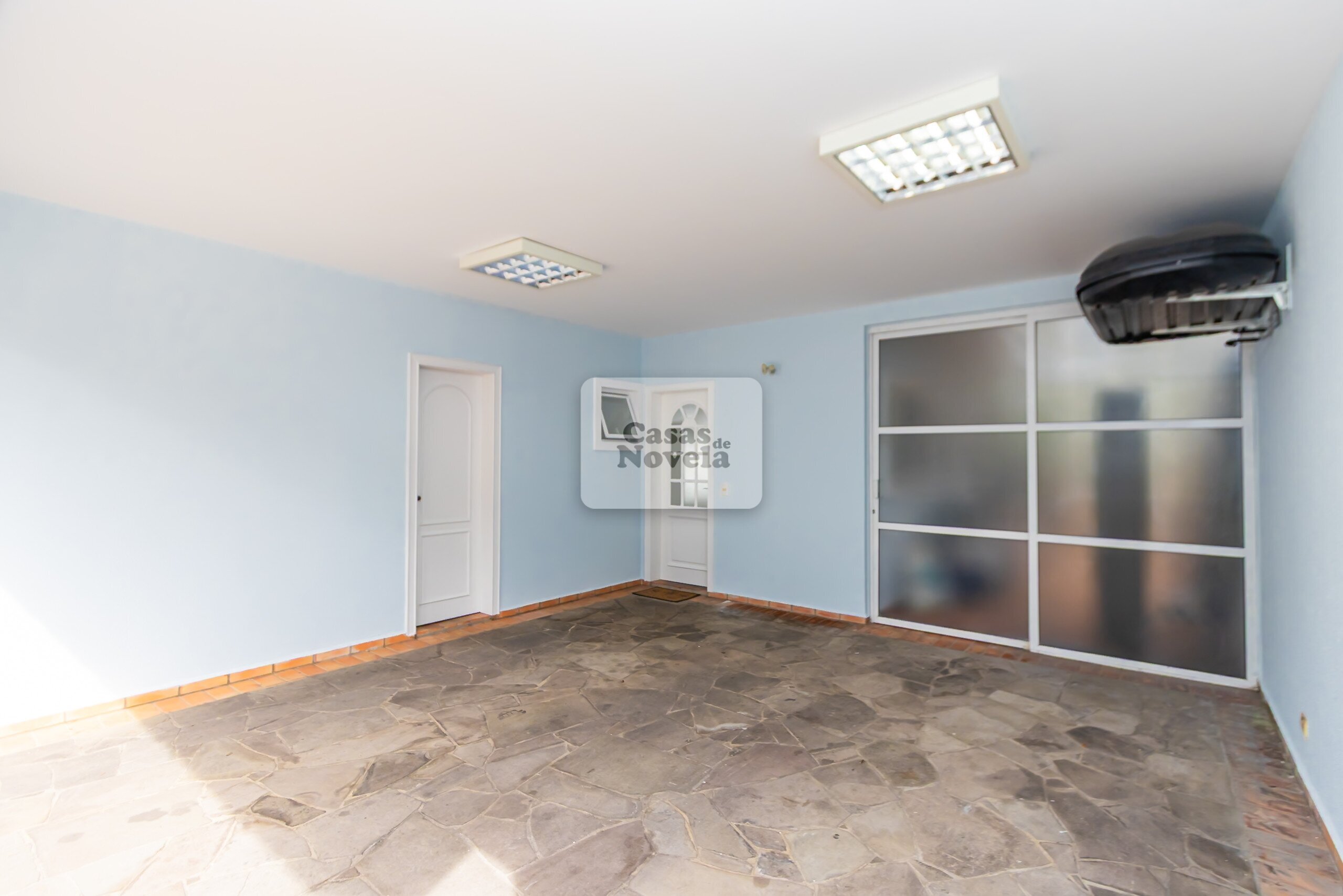 Ambientes climatizados garantem conforto térmico o ano todo: ar-condicionado na suíte máster, na sala de TV do pavimento térreo e no home theater.
