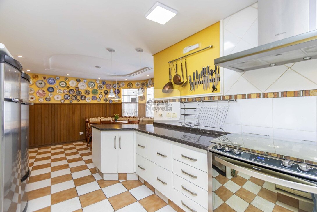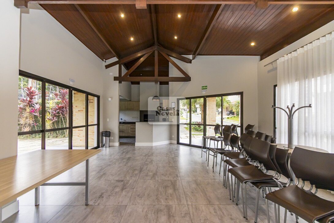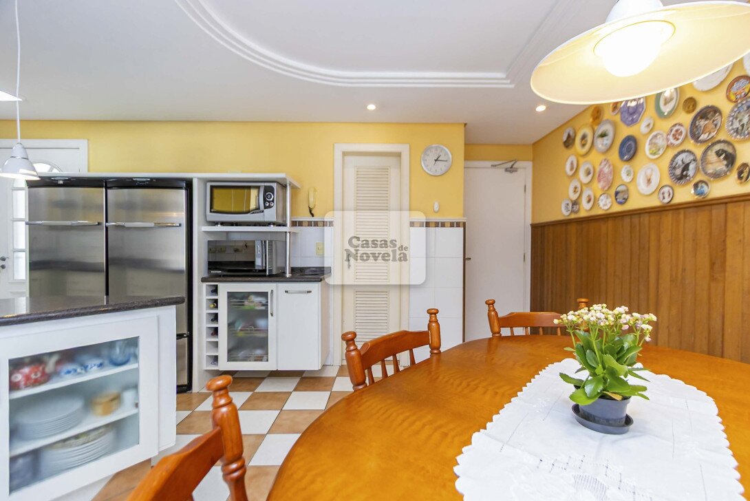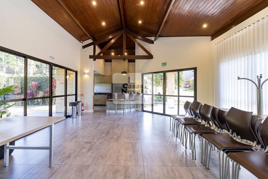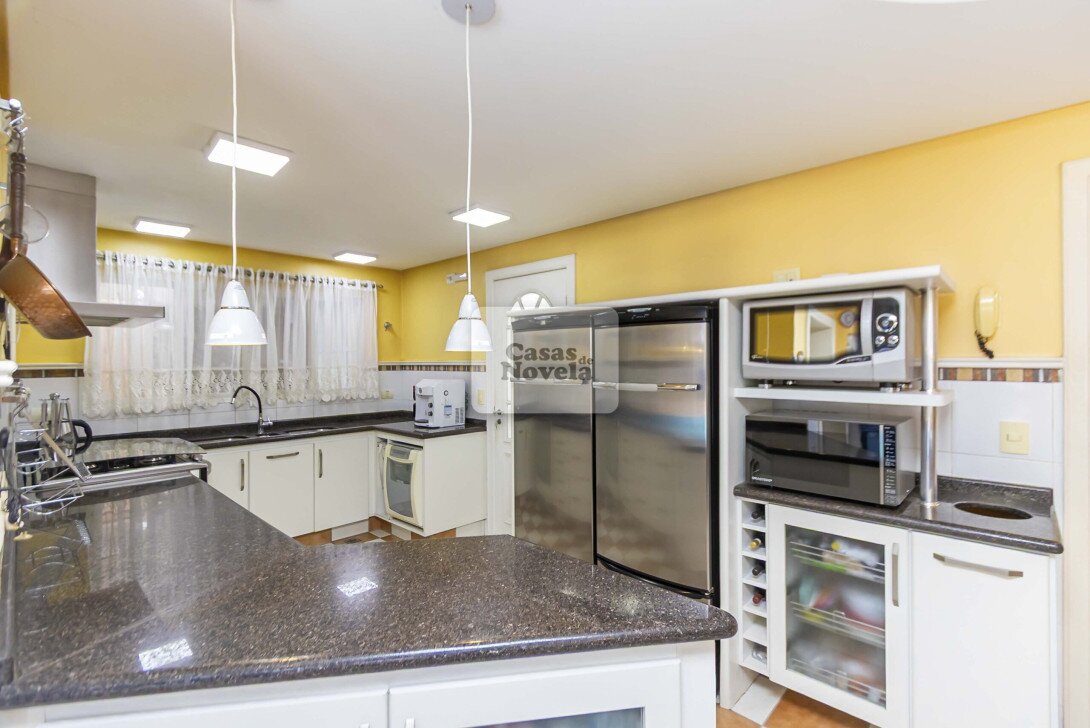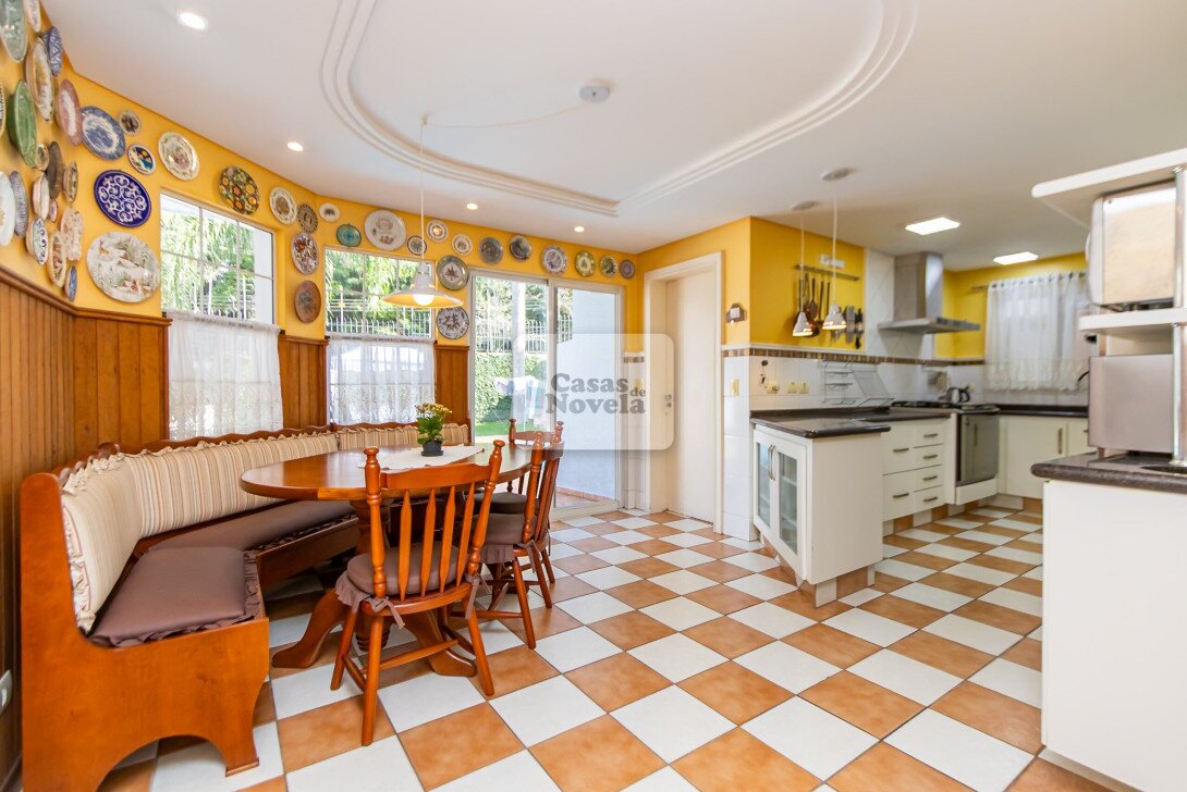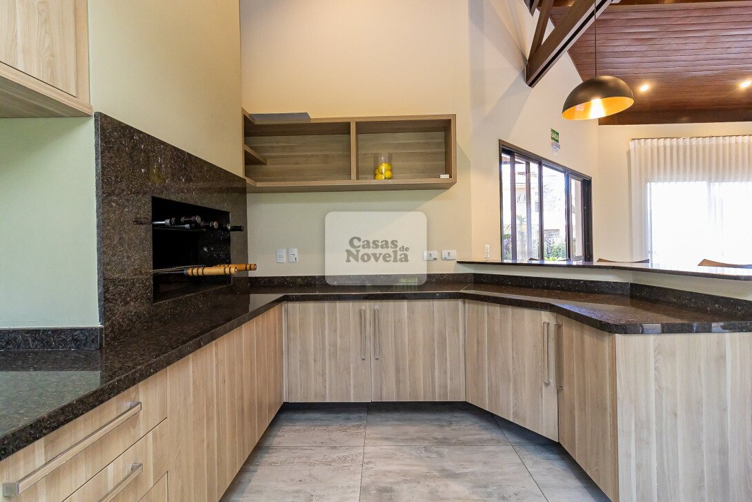 Logo na entrada, a ampla sala com dois ambientes realçado pela lareira que transforma cada encontro em uma lembrança inesquecível, ampla cozinha, ricamente equipada com armários sob medida, canto alemão e despensa funcional; uma sala de TV que pode ser facilmente transformada em um quarto extra, um escritório com banheiro privativo e garagem para 2 carros grandes. Sala de jantar elegante, adega charmosa, além de uma edícula com espaço gourmet completo, churrasqueira, banheiro e depósito.