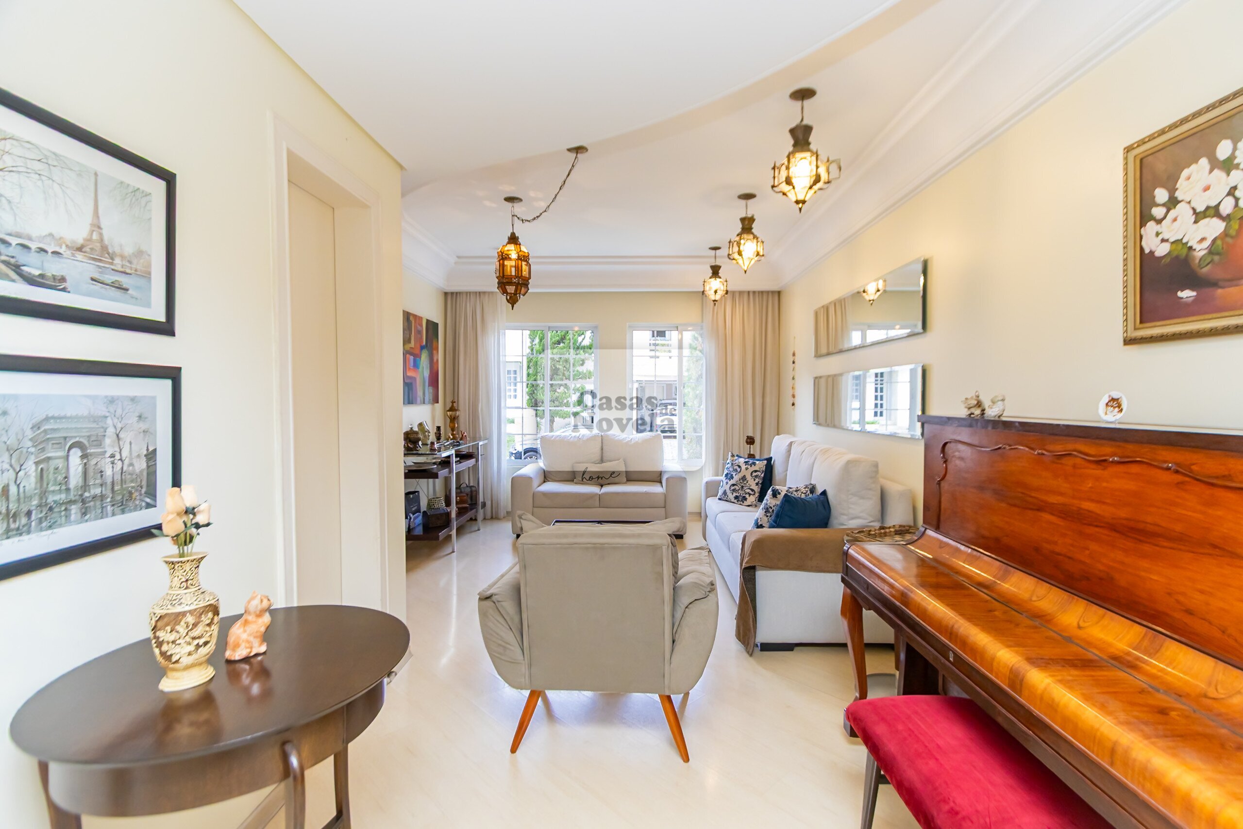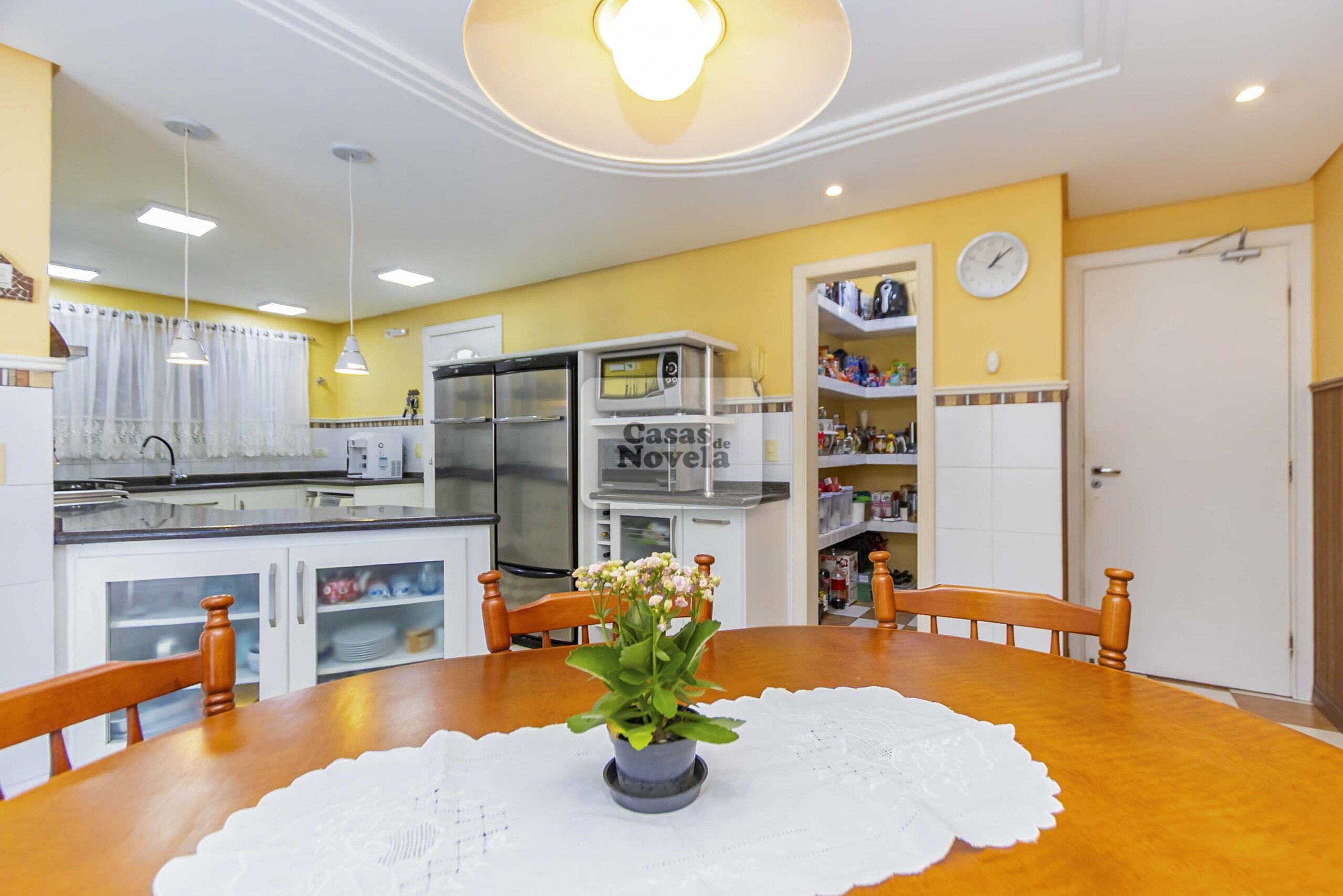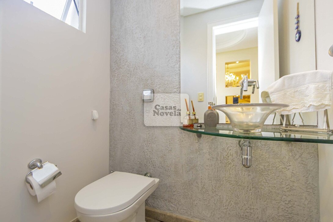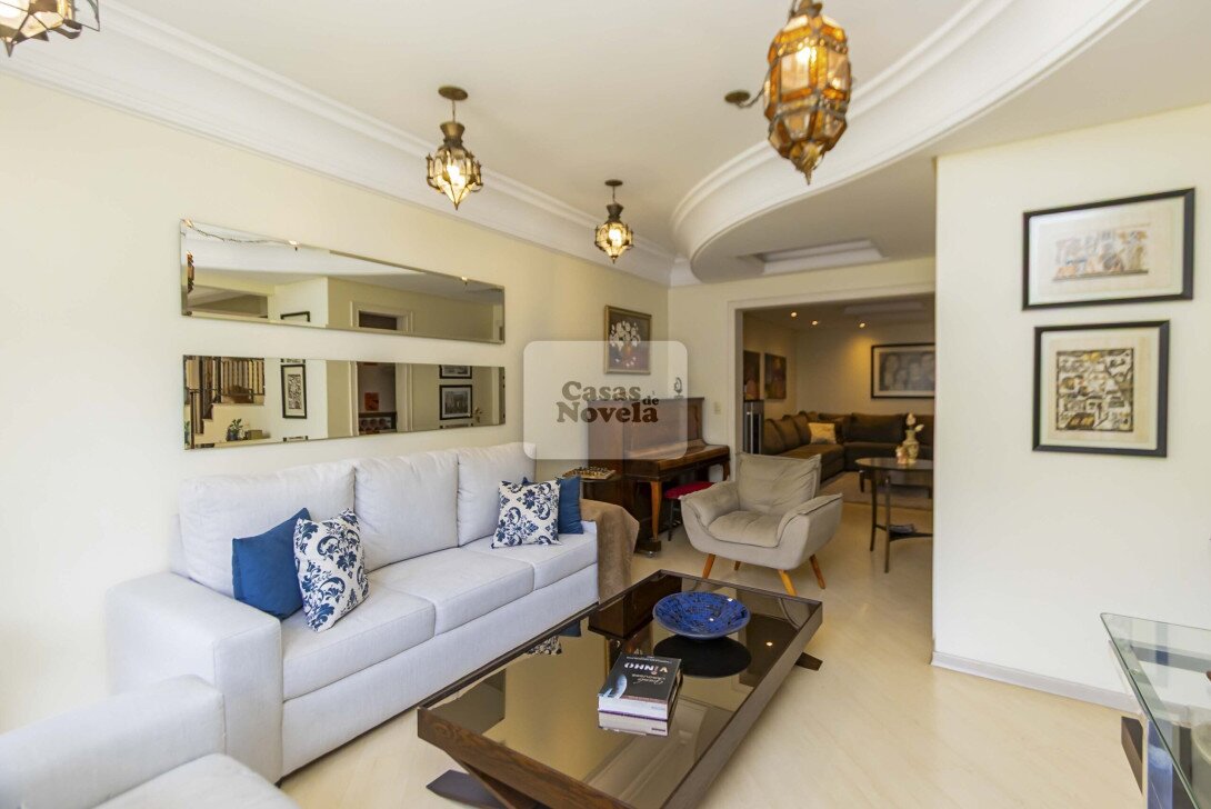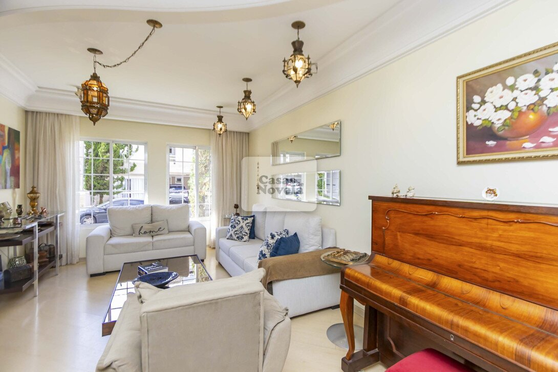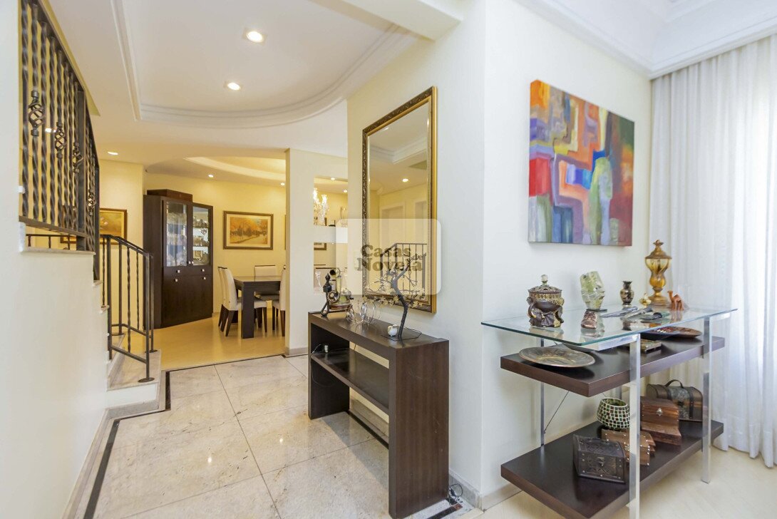Logo na entrada, a ampla sala com dois ambientes realçado pela lareira que transforma cada encontro em uma lembrança inesquecível, ampla cozinha, ricamente equipada com armários sob medida, canto alemão e despensa funcional; uma sala de TV que pode ser facilmente transformada em um quarto extra, um escritório com banheiro privativo e garagem para 2 carros grandes. Sala de jantar elegante, adega charmosa, além de uma edícula com espaço gourmet completo, churrasqueira, banheiro e depósito.