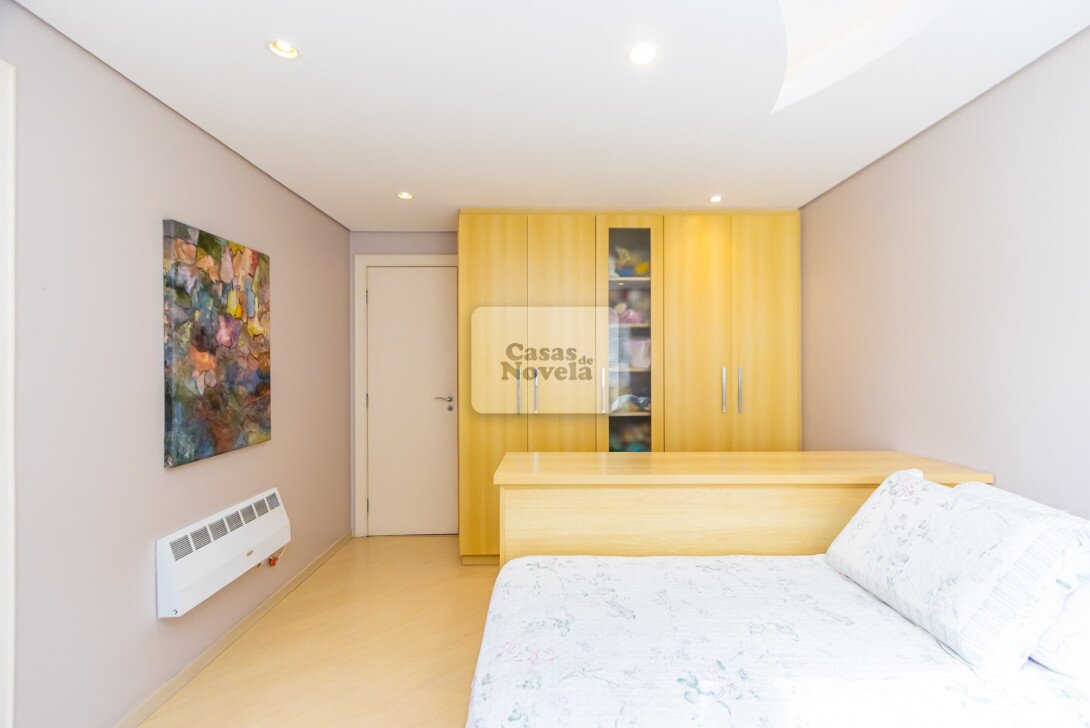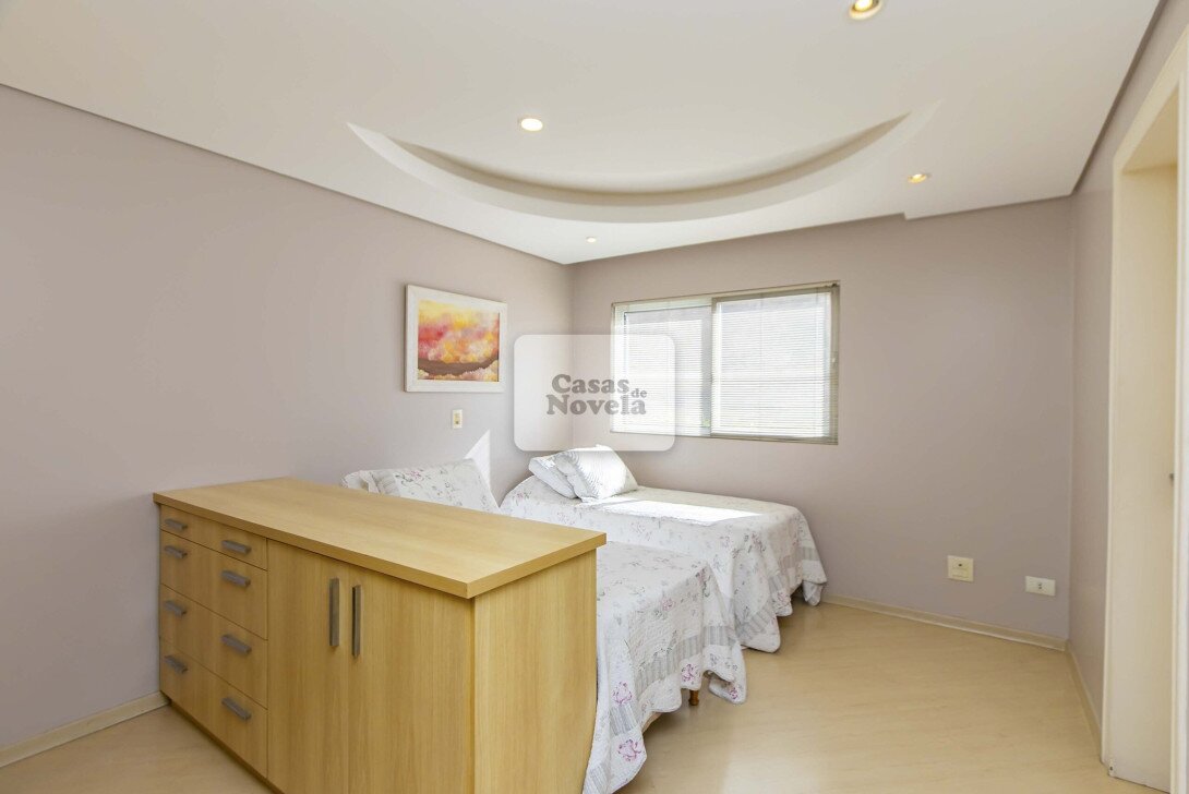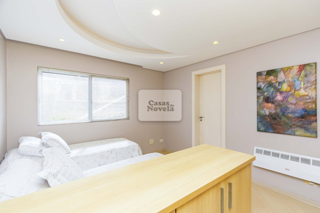 Pavimento superior: Com 4 dormitórios, sendo 2 suítes e 2 demi-suítes, cada espaço foi pensado para oferecer conforto absoluto e privacidade. A suíte máster, com lareira privativa, é um verdadeiro refúgio de paz.