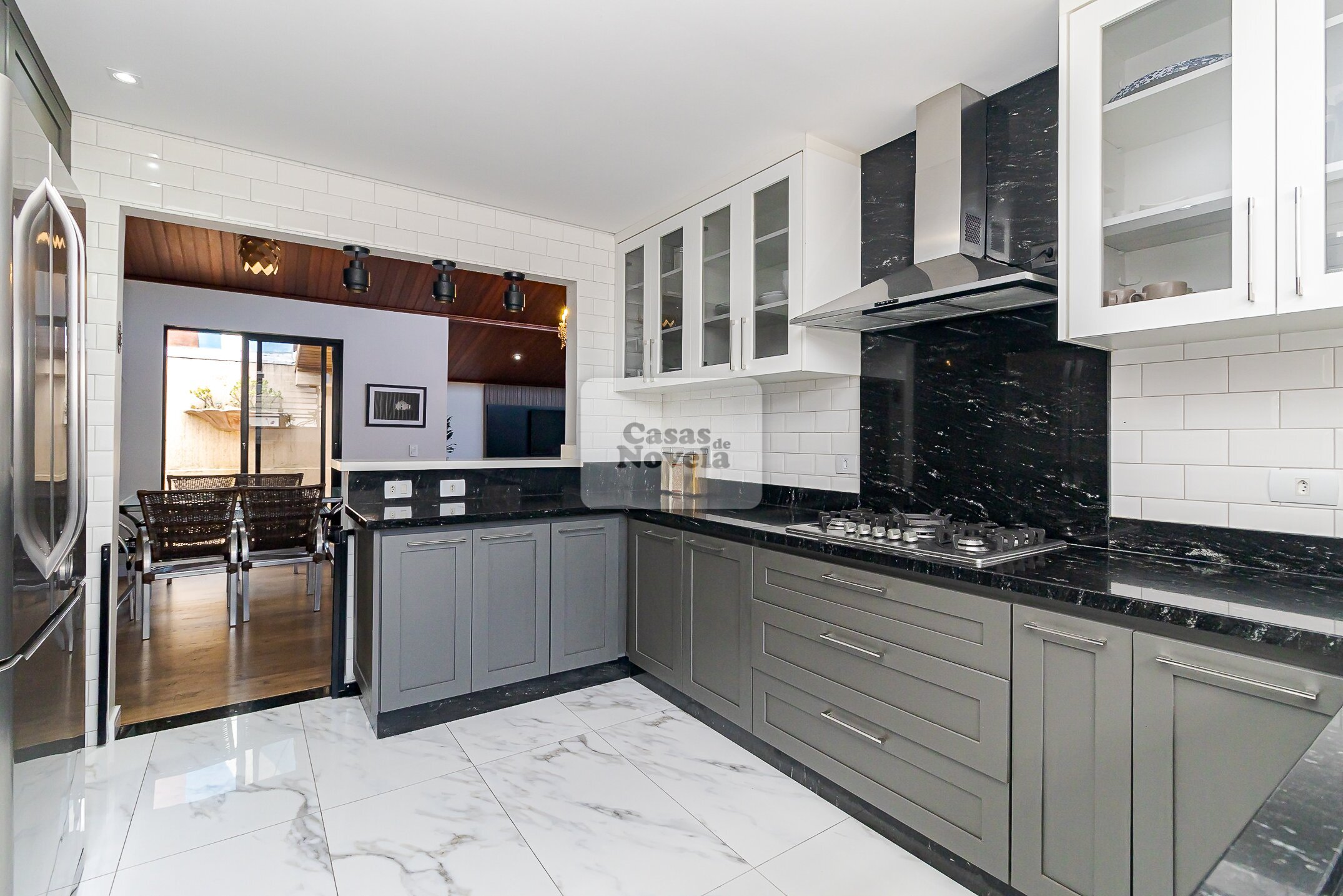 O destaque fica por conta da edícula de dois pavimentos. No térreo, um espaço gourmet completo com churrasqueira a carvão e forno a lenha é perfeito para encontros memoráveis. No andar superior, três salas amplas.